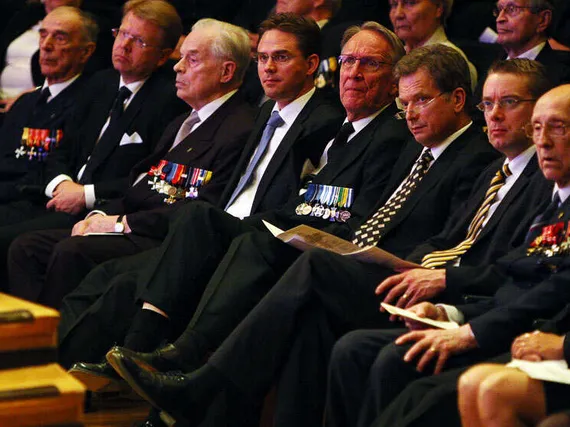 Vuosi 1918 on monelle suomalaispoliitikolle ja Suomen kansalle yhä hankala paikka. Siitä saatiin tänään osoitus, kun tasavallan presidentti Tarja Halosta ei näkynyt Jääkärisäätiön, Vapaussoturien huoltosäätiön, Lotta Svärd Säätiön ja niitä lähellä olevien yhdistysten järjestämässä juhlassa vapaussodan päättymisen 90-vuotispäivän kunniaksi. Finlandia-talo kyllä oli täynnä, joukossa runsaasti harmaantunutta vetaraaniväkeä kunniamerkkeineen.